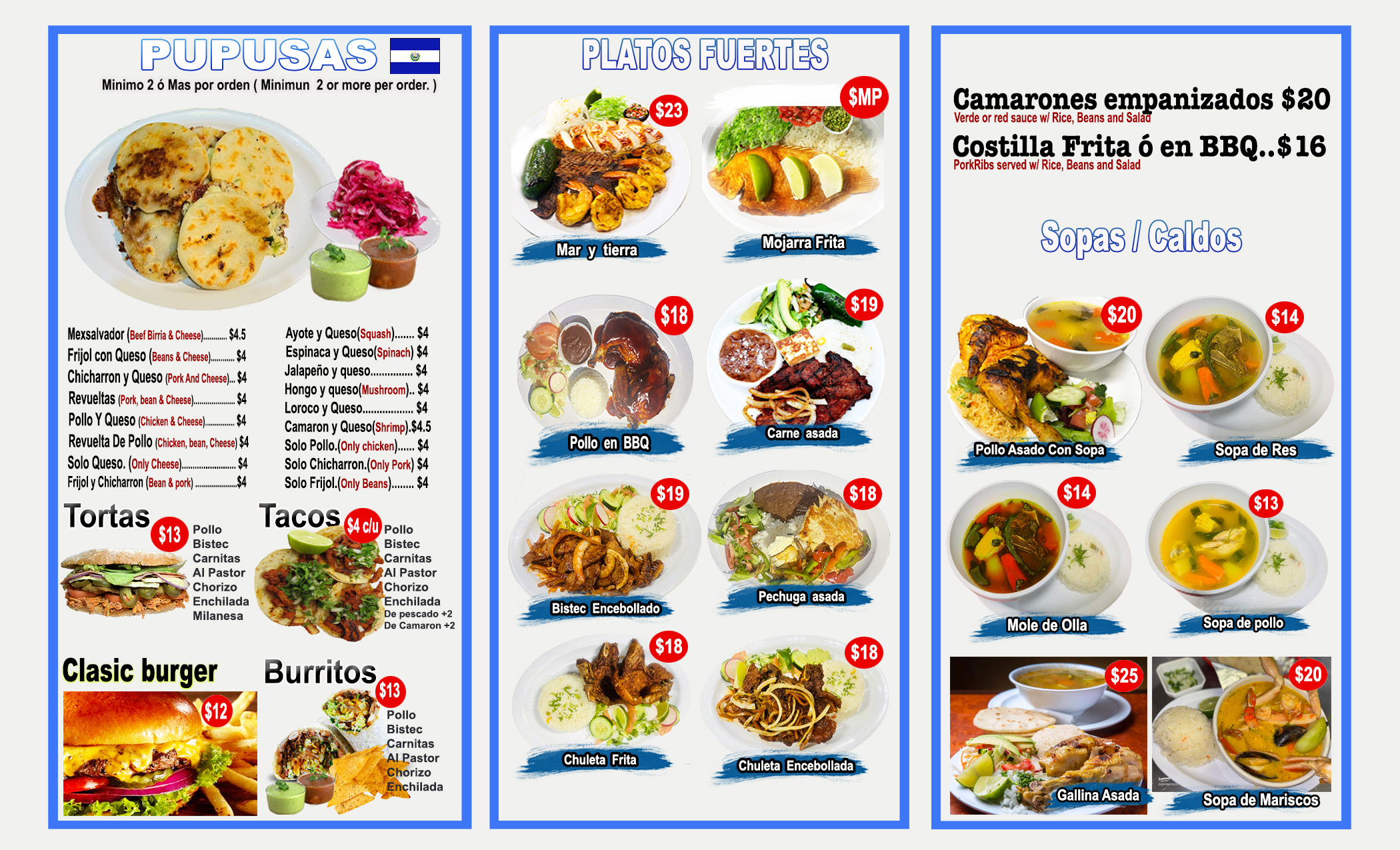 Mi elsalvador Food Menu