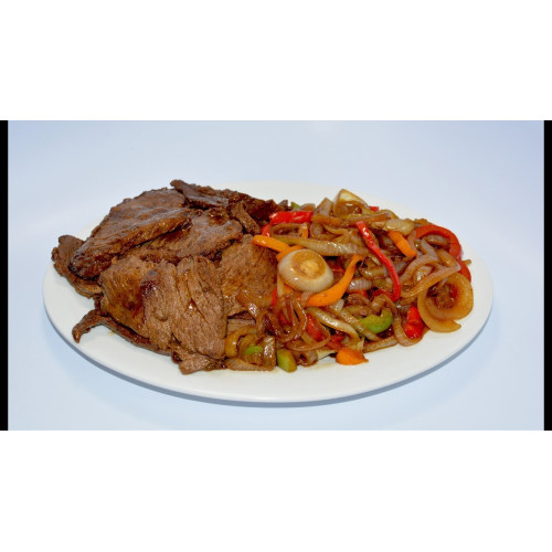 Tender steak topped with savory sautéed onions. Served with Rice and beans