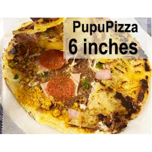 Medium pupusa like Pizza Style of 6 inches, Stuffed with Pork Chicharron, Jalapeno, Ham, Peperoni And Cheese. made with Corn masa (Glutten free)